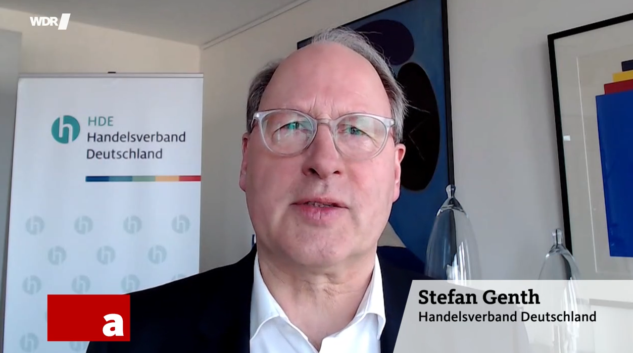 | | | HDE-Hauptgeschäftsführer Stefan Genth sprach mit der Aktuellen Stunde im WDR-Fernsehen über die dramatischen Schadenssummen durch Ladendiebstahl in Deutschland