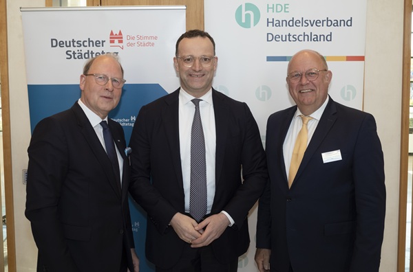 | | Bei einem gemeinsamen parlamentarischen Abend von Handelsverband Deutschland und Deutschem Städtetag standen die aktuelle Lage der Innenstädte und mögliche Maßnahmen für attraktive Stadtzentren im Fokus. Gastredner war der Vorsitzende der CDU/CSU-Bundestagsfraktion, Jens Spahn. Ein aktuelles gemeinsames Papier von HDE und Städtetag finden Sie unten im Link.